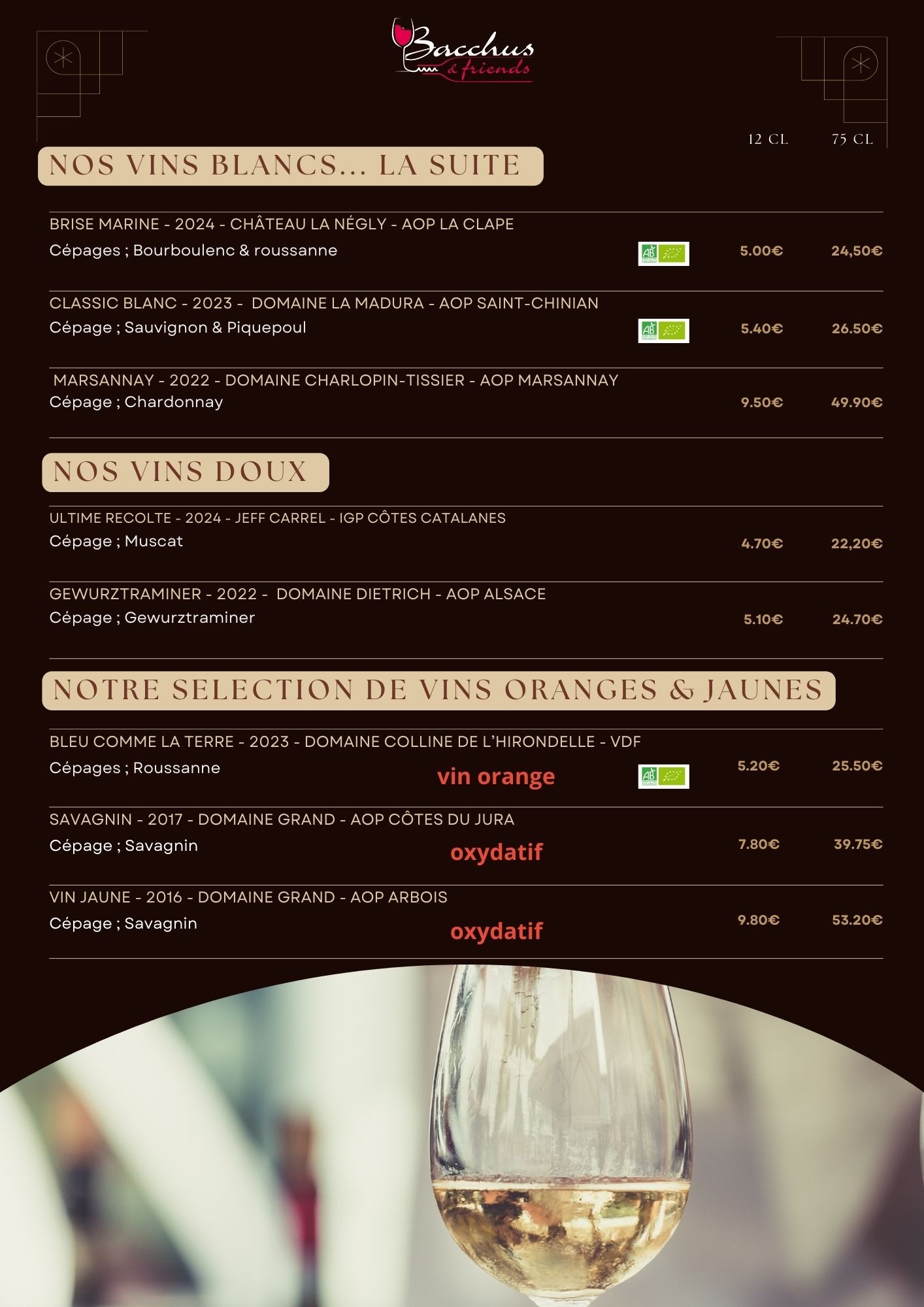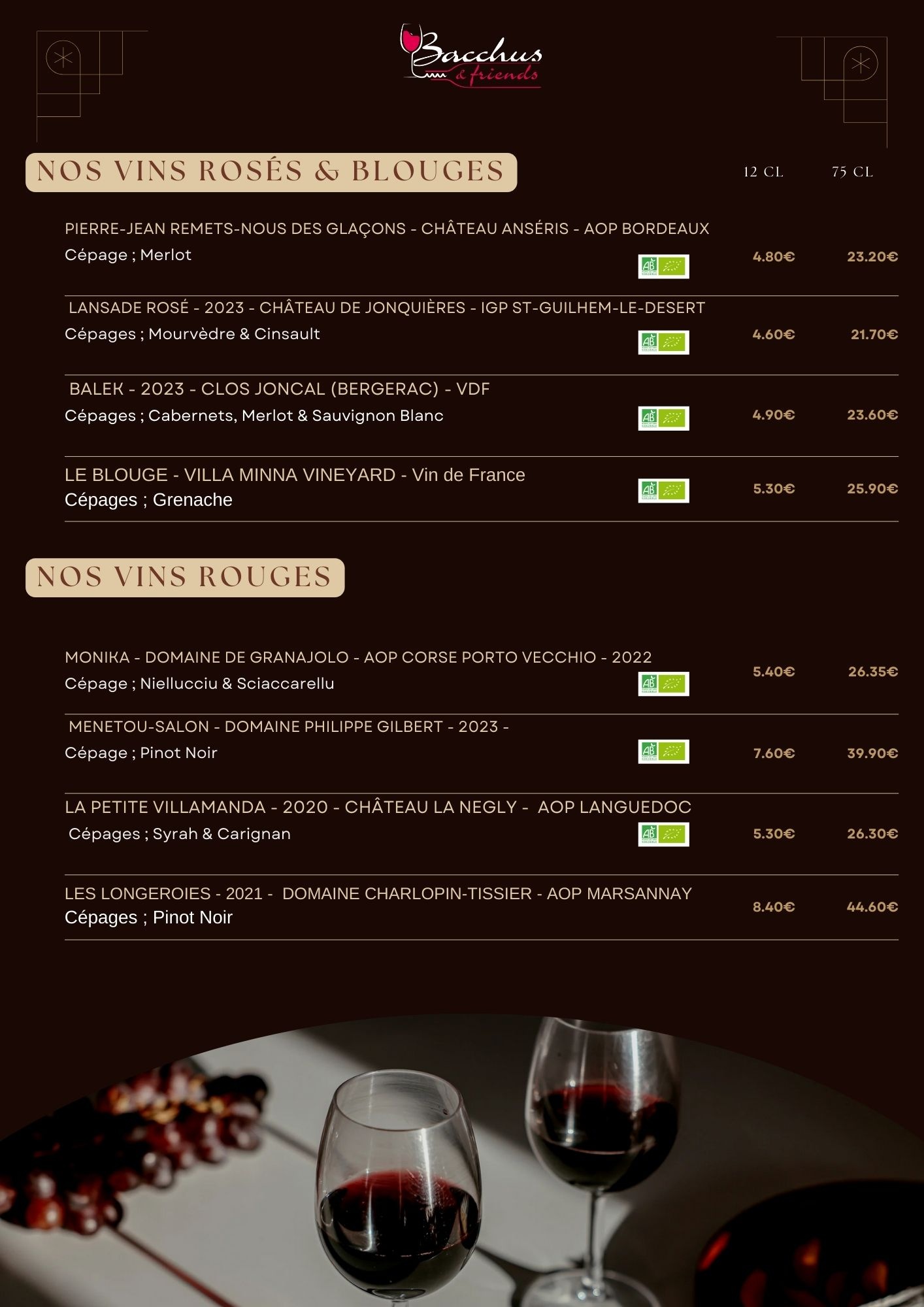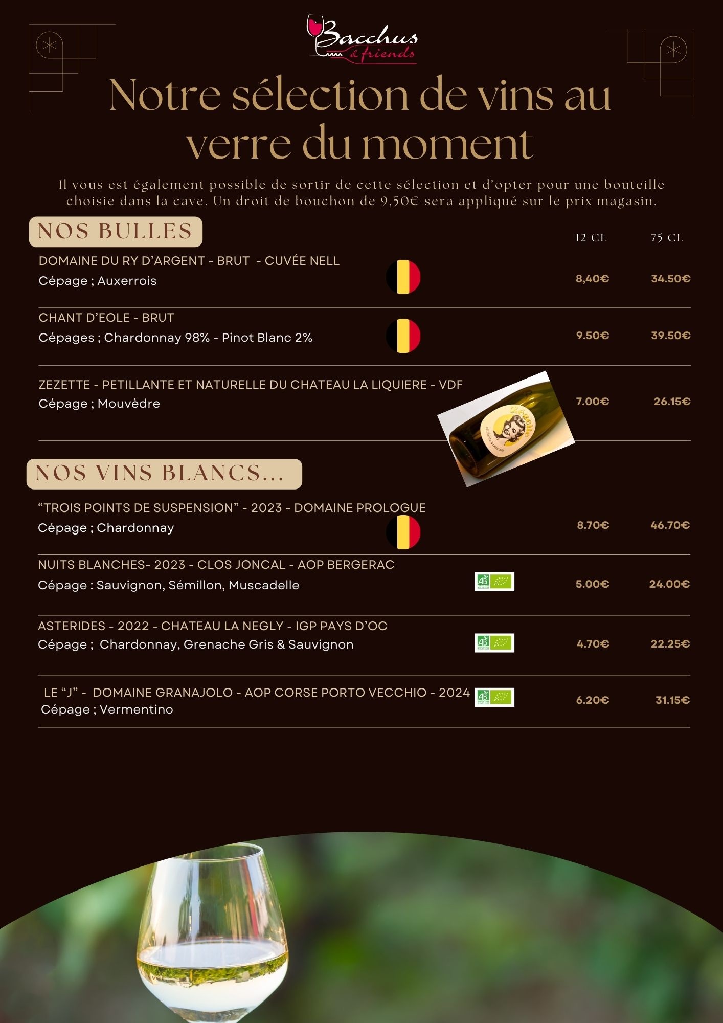 * Une sélection d'une vingtaine de vins au verre qui varie selon la saison & nos envies... (Retrouvez la sélection du moment dans notre carte ci-dessous)